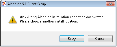 Setup prevents from overwriting an existing Alephino Client installation, otherwise an error message like this appears: